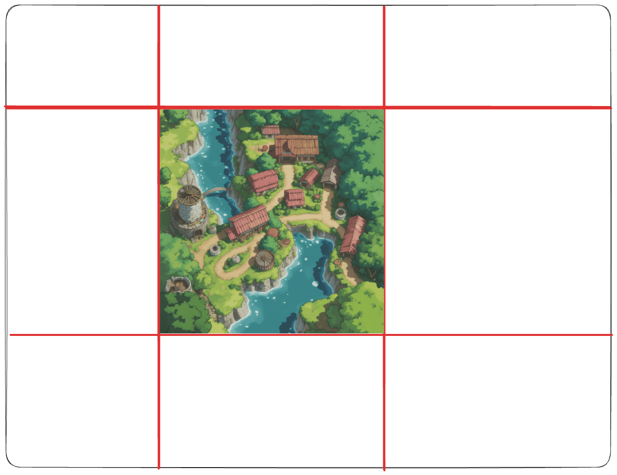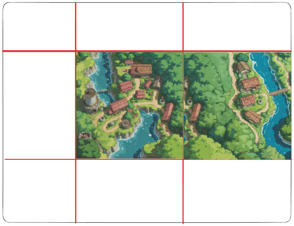 In this sketch, we see a grid with a single image on it. Let's say we want to generate the one immediately to the right. In order to do that, we should slice the right part of the image and pass it to the AI model in order to inpaint it.